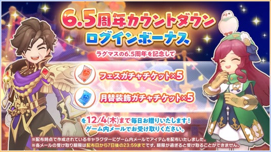 『ラグナロク マスターズ』は 2025年12月5日(金)でサービス開始6.5周年を迎えます。これに先立ち、「6.5周年グランドフェスティバル2025」を2025年11月26日(水)より開催いたします。