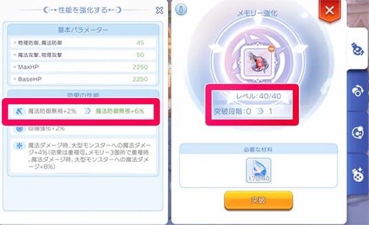 - 紫色品質のメモリー装備のレベル上限を開放!「突破」が可能に!