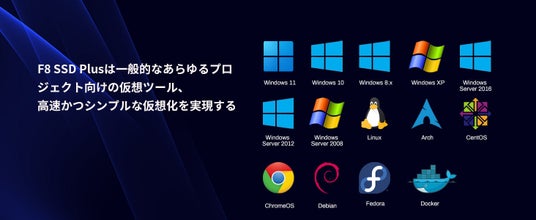 F8 SSD Plusは、TerraMasterオペレーティングシステム(TOS)搭載の仮想化ツールとSSDの高い応答速度により、簡単かつ迅速に仮想化環境を構築可能です。