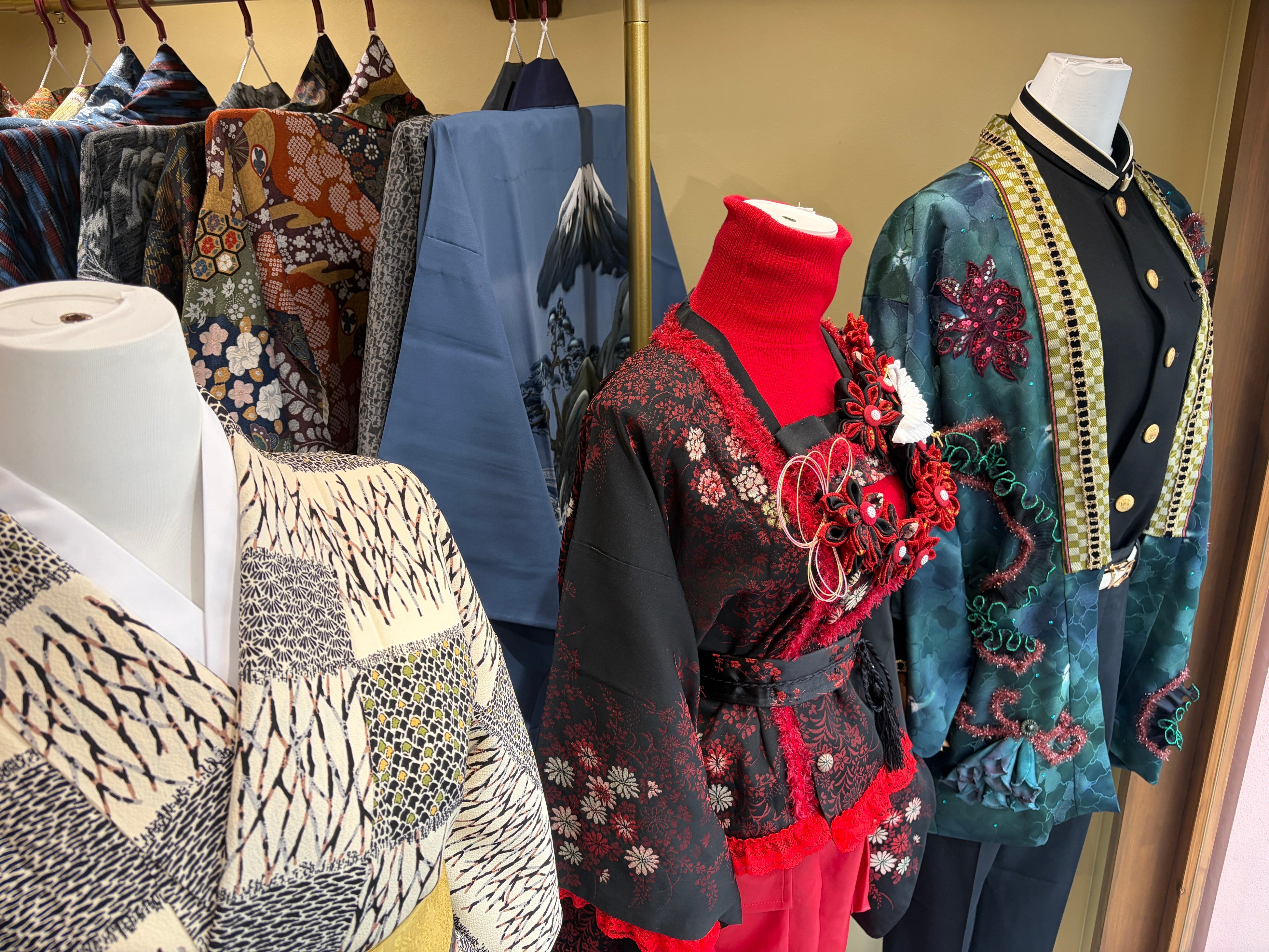 和洋折衷を基調とした個性的な衣装のレンタルも展開し、特別な「変身体験」を気軽に提供します。着物を厳選して仕入れ、日本の文化と現代的な「カワイイ」を融合させた、ここでしか出会えない衣装を取り揃えています。店舗は名古屋駅から徒歩3分という好立地にありながら、当日来店も大歓迎。観光客、イベント参加者、作品撮りなど、多様なニーズに即座に対応します。さらに、店内にはフォトスポットも完備しており、レンタルした衣装での記念撮影をすぐに楽しんでいただけます。また、事業の一環として、独自のルートで仕入れた海外(フィリピン)の子ども服販売も行い、近隣住民やファミリー層にも開かれた店舗を目指します。