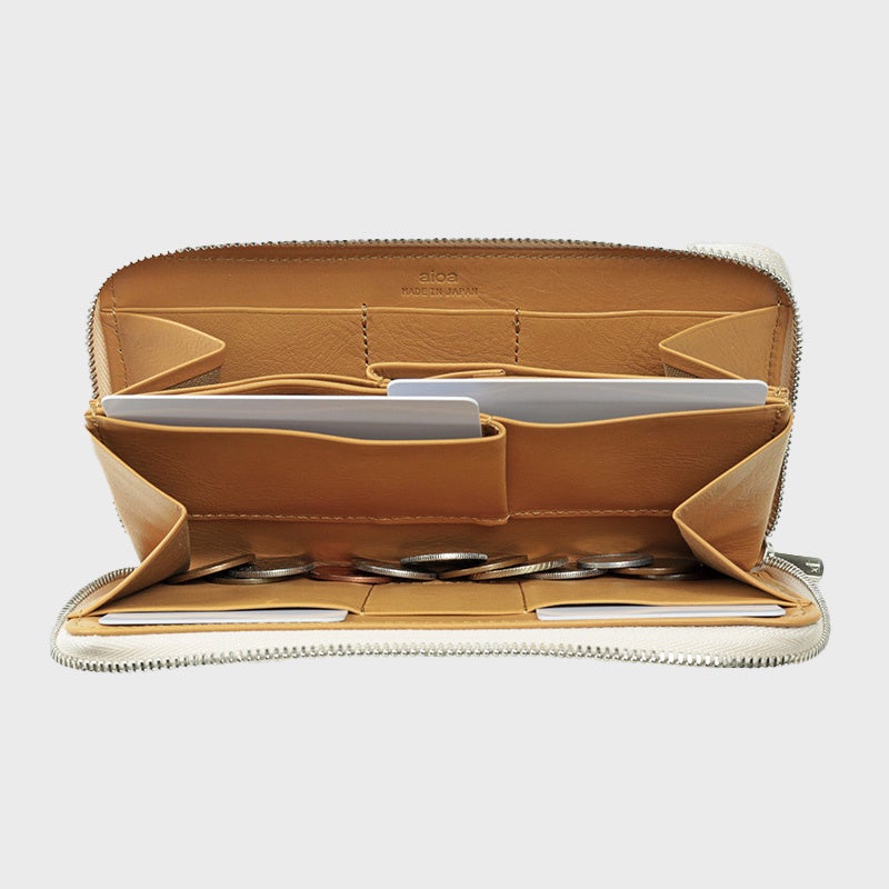 横幅は1万円札とほぼ同じ寸法ですが、仕切りとマチを縫い付けずに可動域を広げることで、出し入れのしやすさとコンパクトさを実現しています。