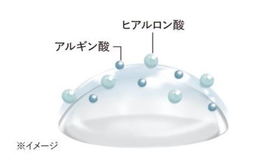 優れた保水力で水分の蒸発を防ぎ、レンズを保湿する効果が期待できる「ヒアルロン酸」と、コンブやワカメ等の海藻類から抽出され、水分を滞留させる働きを持つ天然保湿成分の「アルギン酸」※3の2種類のうるおい成分を保存液中に配合し、水分をしっかり保持します。