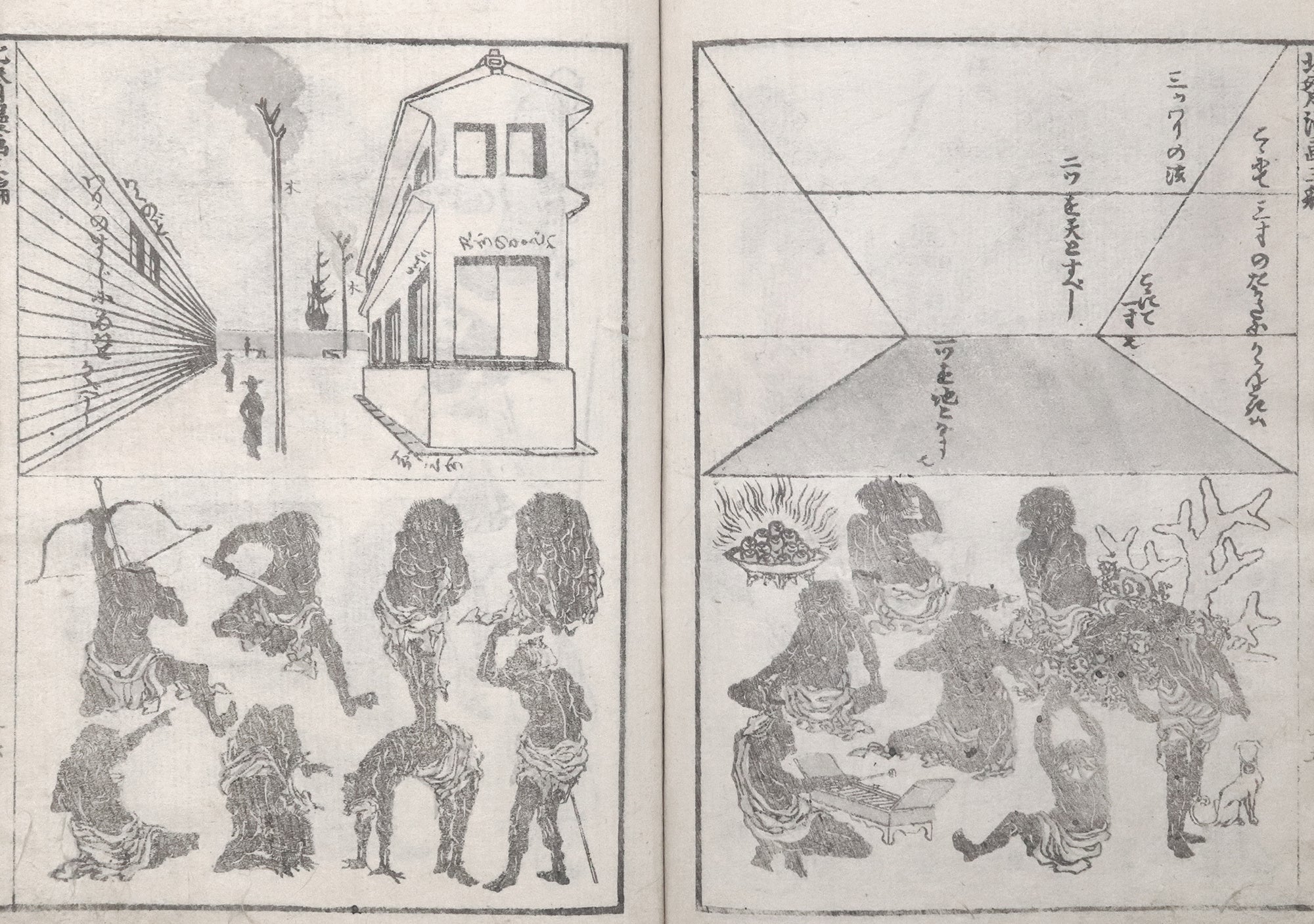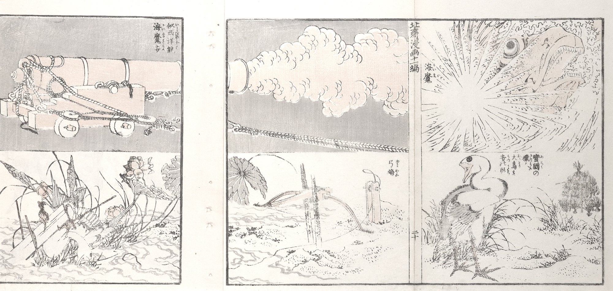 『北斎漫画』十一編「似西洋銃海魔伐・弓締」