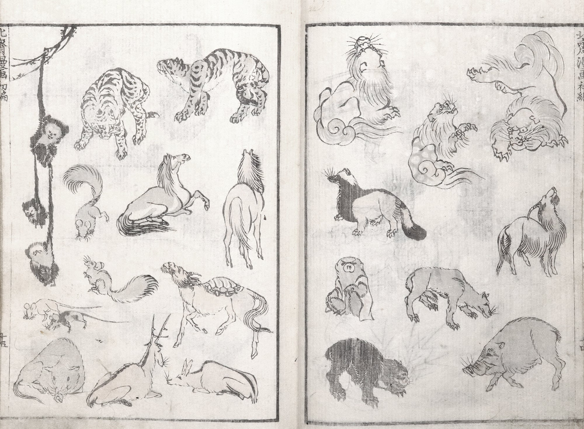 北斎の代表作であり、西洋で巻き起こったジャポニスムの要因の一つとも言われる『北斎漫画』。絵手本(絵の教科書)でありながらも鑑賞性が高く、絵師を志す者の他に市井の人々も買い求めるベストセラー作品になりました。