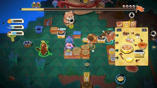 1台で最大4人まで遊べます。また、「アドベンチャーパート(ソロプレイ)」では、前作のストーリーを踏襲した世界観で、魚を釣り、野菜を育て、料理を作り、お客さんに提供する!?「鬼のワンオペ」レストラン運営が楽しめます。