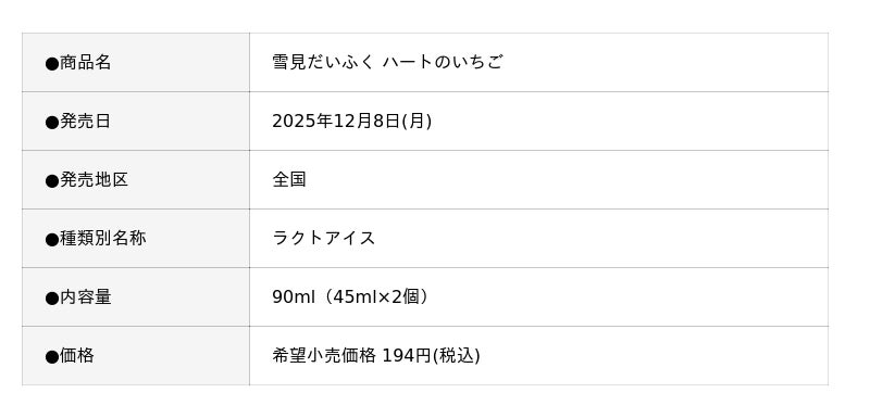 株式会社ロッテ(東京都新宿区、代表取締役社長執行役員:中島英樹)は、食べた人の心を包み、小さな幸せで心を癒やす「雪見だいふく」ブランドから「雪見だいふく ハートのいちご」を12月8日(月)に発売します。