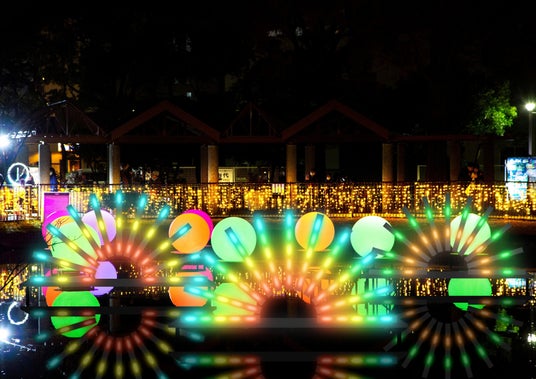 足立区の冬は光の祭典!毎年恒例となった20mを超える8本のイルミネーションツリーとレーザー、音楽のコラボや、子どもが楽しめるメリーゴーランドなど、楽しい企画が盛りだくさん。週末は様々な特別企画も。