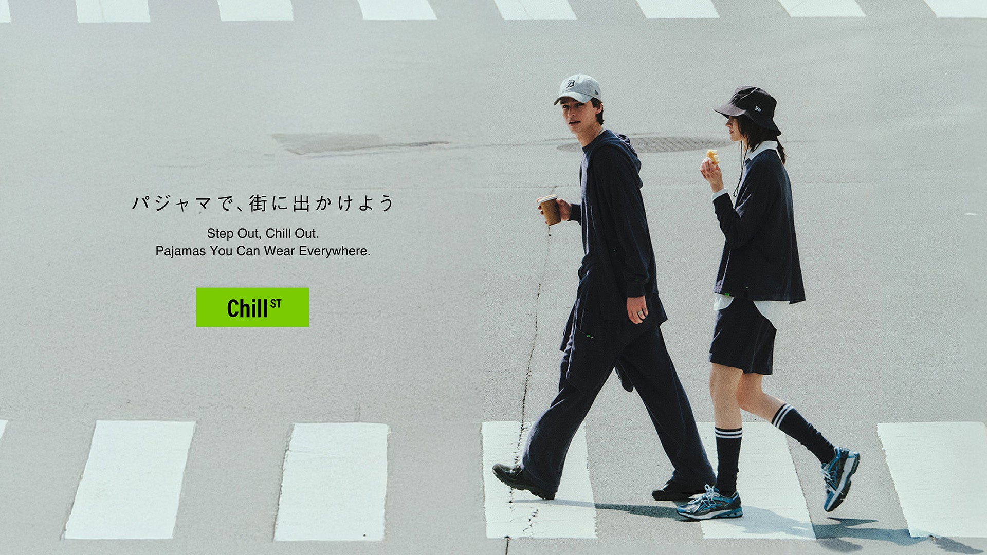 今年5月にローンチした「Chill ST」は、 “ストリート×パジャマ”をコンセプトに誕生しました。ヨガウェアを日常着とする「アスレジャー」に続き、パジャマをストリートファッションとして楽しむ「ストリートパジャマ」という新ジャンルを創出し、多忙な現代人のライフスタイルをスマート&リラクシーにアップデートしていくアイテムを展開しています。