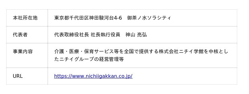 株式会社ニチイホールディングス(本社:東京都千代田区、代表取締役社長 社長執行役員:神山亮弘、以下「当社」)は、全国で介護・医療・保育サービス等を展開する株式会社ニチイ学館を中核としたニチイグループの新卒採用を進めるにあたり、福祉業界大手4社(株式会社学研ココファン、SOMPOケア株式会社、株式会社ツクイ、株式会社ベネッセスタイルケア ※五十音順)とともに、Zoomを利用した学生向け合同オンラインイベント「福祉キャリフェス2025」を12月6日に初開催することとなりましたので、お知らせします。