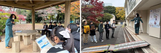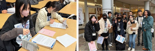 写真左:事前学習の様子 写真右:ポスター発表の会場へ