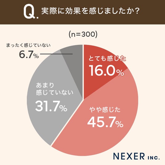 次に、実際に効果を感じられたかを聞いてみました。