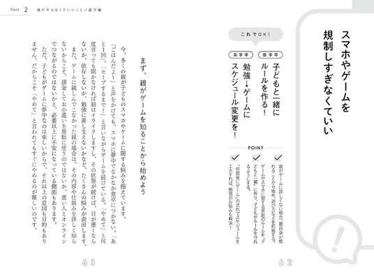 本書では、子どものお出かけ情報サイト『いこ-よ』の研究機関『いこーよ 子どもの未来と生きる力研究所』で行ってきた親子調査や研究結果をもとに、「親がやらなくていいこと」を紹介しています。