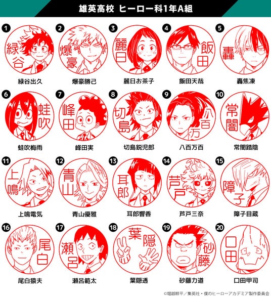 「僕のヒーローアカデミア はんこコレクション」は、TVアニメ『僕のヒーローアカデミア』のお気に入りのキャラクターと好きな名前や文字でつくれるオーダーメイドのはんこ。雄英高校1年A組、1年B組の生徒からプロヒーロー、敵<ヴィラン>など、これまでSNSから寄せられたリクエストに応えて、キャラクタービジュアルを164種類まで増やしてまいりました。