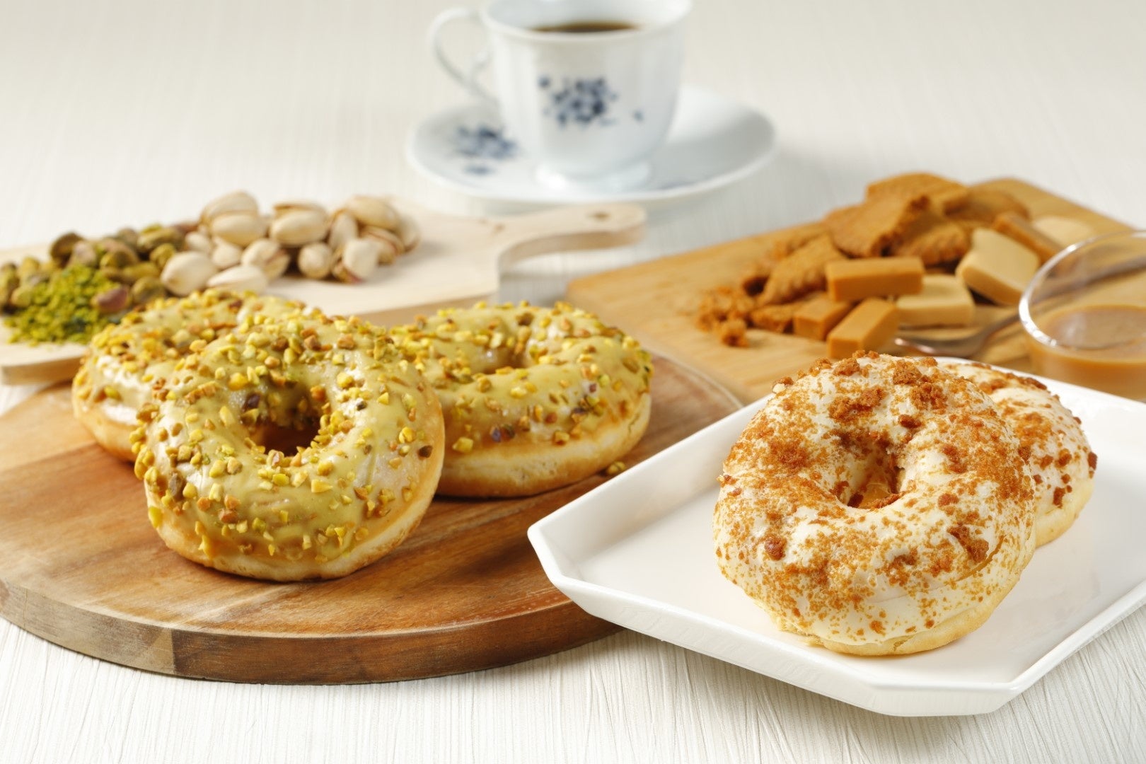 ふんわり柔らかな生地に、香ばしいキャラメルとほんのり香るシナモン風味のビスケットを合わせた、贅沢な味わいのドーナツです。
