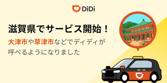 DiDiモビリティジャパン株式会社(東京都港区、代表取締役社長:和久山大輔)は、2025年11月27日(木)より、滋賀県の大津市域交通圏及び湖南交通圏にて配車アプリ「DiDi(以下、「ディディ」)」のサービス提供を開始します。これに伴い、ディディの日本国内におけるサービス提供エリアは29都道府県となります。