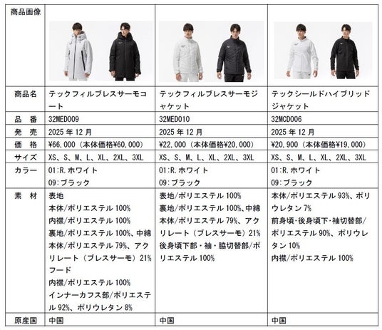 『ブレスサーモ』は、1993年に開発されたミズノ独自の基幹素材で、人体から発生する水分、不感蒸泄(ふかんじょうせつ)を吸収し発熱する、ミズノ独自の吸湿発熱素材です。この『ブレスサーモ』繊維とポリエステル繊維を使用した中綿が『テックフィルブレスサーモ』綿です。