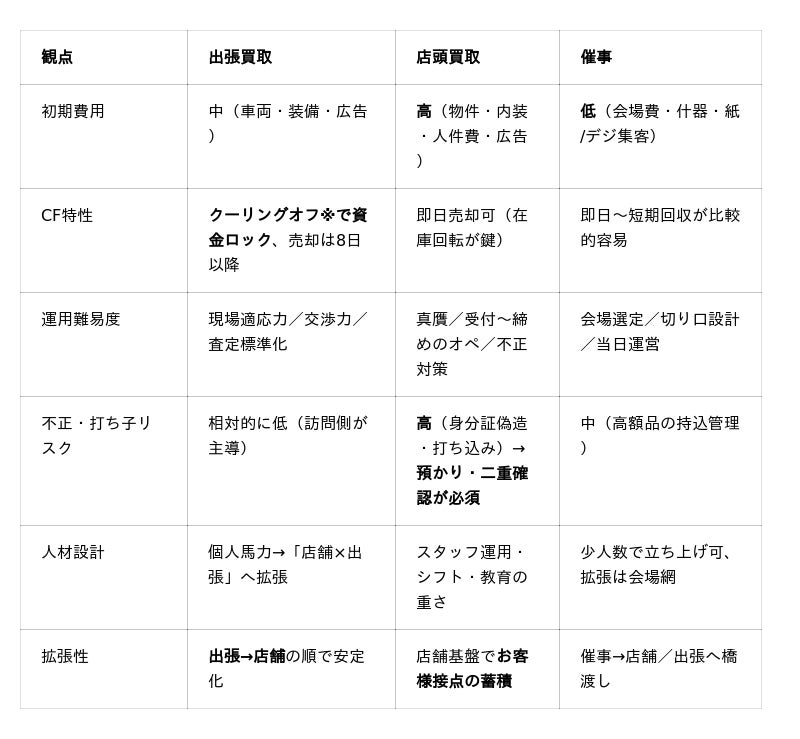 - 資金・人材前提が整い、安定母集団を作りたい:店頭(+催事)で来店導線を積層