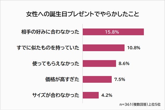 女性への誕生日プレゼントでやらかしたことは「相手の好みに合わなかった」