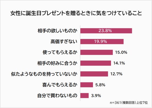 女性に誕生日プレゼントを贈るときに気をつけていることは「相手の欲しいものか」