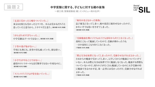 同様に、中学受験に関する「子どもに対する後悔」を聞いたところ、下記のような声が寄せられました。
