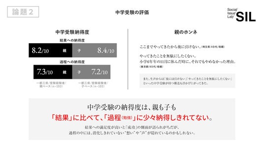 「受験結果」に比べて、「過程(受験勉強)」への納得度が低い親子双方の現実。結果の裏に“消化しきれない想い”も