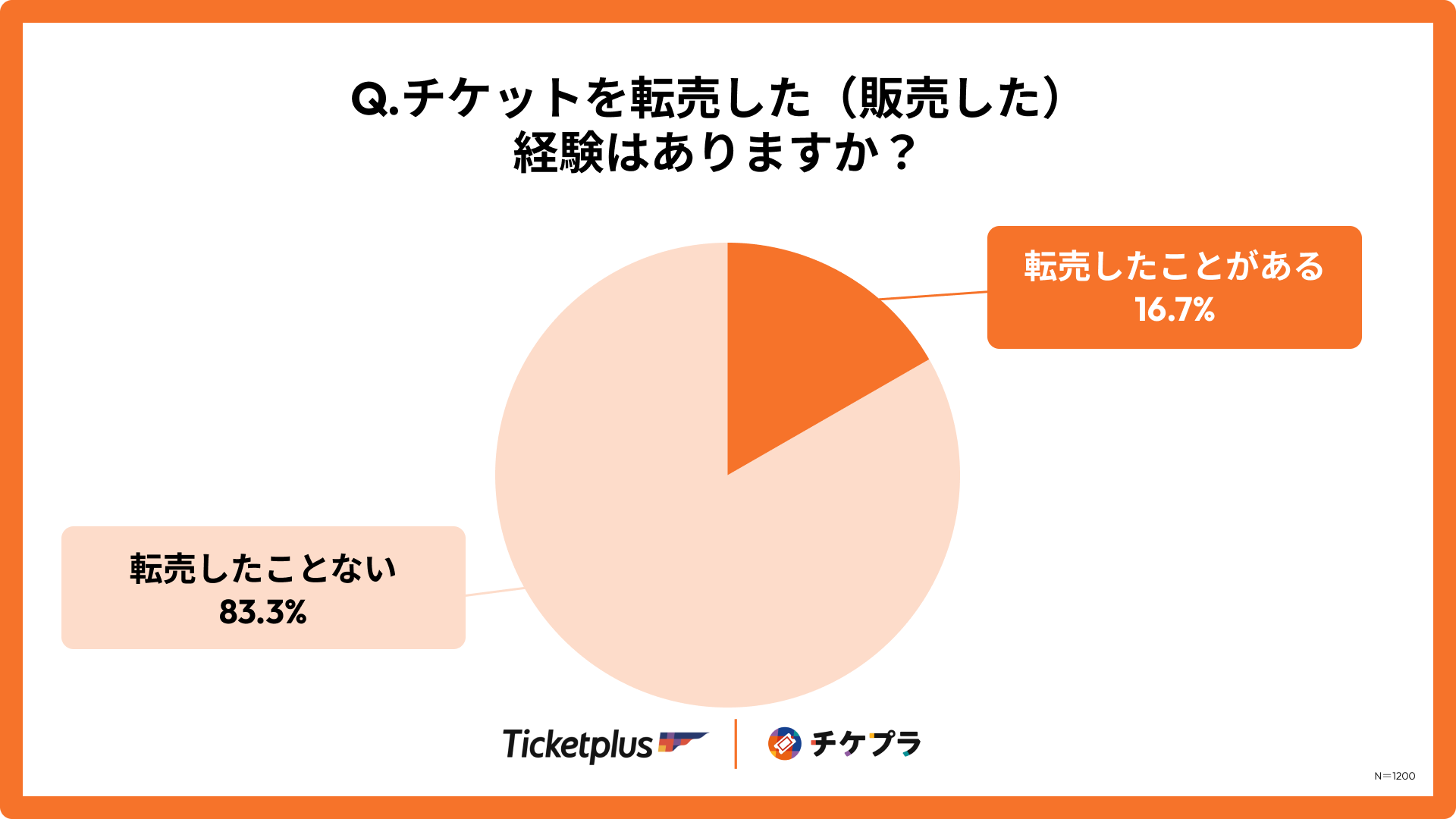 電子チケット事業やチケット二次販売「チケプラトレード」を運営する株式会社チケットプラス(本社:東京都渋谷区、代表取締役:佐藤 元)は、全国のライブ・フェス・イベントのチケット購入経験者1,200人を対象に「チケット不正転売に関する実態調査」を実施しましたので、結果を発表いたします。