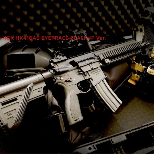 HK416A5 EyeTraceは、ドイツの銃器メーカー“Heckler & Koch”より公式ライセンスを取得したリアルなディテールと刻印を忠実に再現したエアソフト電動ガンです。