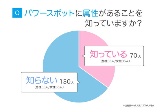 続いて、成人男女200人に「パワースポットに属性があることを知っていますか?」と尋ねたところ、知っている人はわずか3割程度という結果になりました。