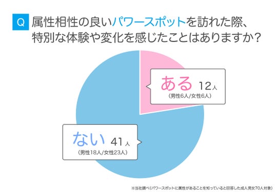 パワースポットの属性の認知度はまだ低いものの、実際に「相性のいいパワースポットを訪れたことでポジティブな効果を得た」という人もいました。