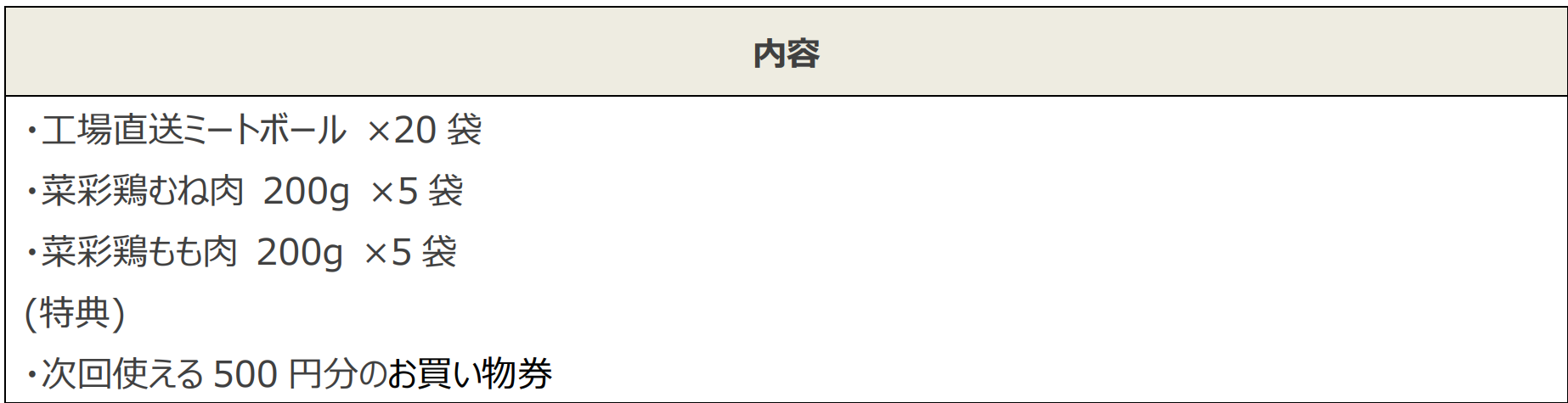 ・特典:福袋に入っている商品を使った、親子で一緒に作れる「レシピカード」が付きます。また、親子で使えるミート君手ぬぐい2枚、次回使える500円分のお買い物券が付きます。