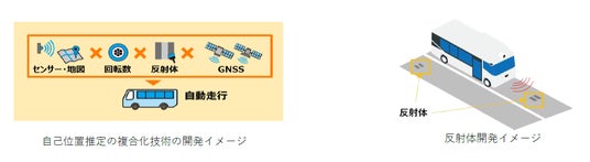本事業では、自己位置推定技術の複合化および路側反射体*4の開発を行い、中央防波堤エリアを技術検証の場として走行実証を実施します。開発された技術は、東京国際クルーズターミナル周辺および羽田空港制限区域内での走行実証を通して有効性を確認します。