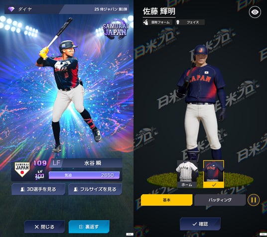 この侍ジャパンカードは“ワイルドカード”の効果を持ち、オーダー内で最大5枚まで全チームのセットデッキ選手として扱われます。現在使用しているチームセットデッキのレベルが上がりやすくなり、戦略的なチーム編成に幅広く活用できます。また、オーダーを侍ジャパンカードのみで構成すると「侍ジャパンセットデッキ」効果が発動し、試合を行う際、選手たちが侍ジャパン専用ユニフォームを着用します。