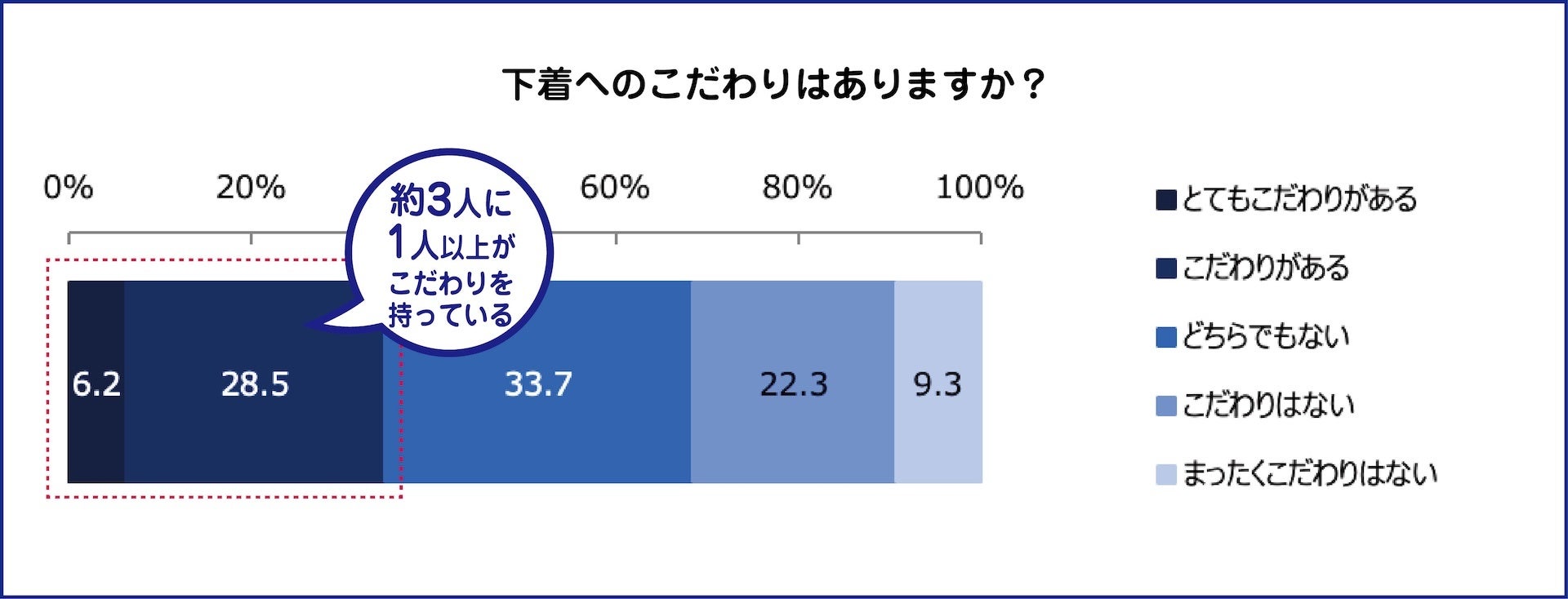 約3人に1人が下着にこだわりを持っており、こだわるポイントは「はきごこち」「肌ざわり」「通気性」「フィット感」