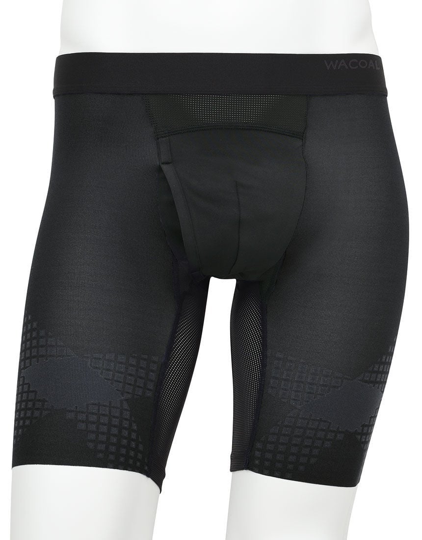 通気性や吸汗速乾性、抗菌防臭機能のある素材をフロント部分の肌側に使用し、快適性を向上。からだの動きにフィットしてズレにくく、裾部分にはフリーなカッティングの素材を使用しているためアウターにラインが出にくい設計です。