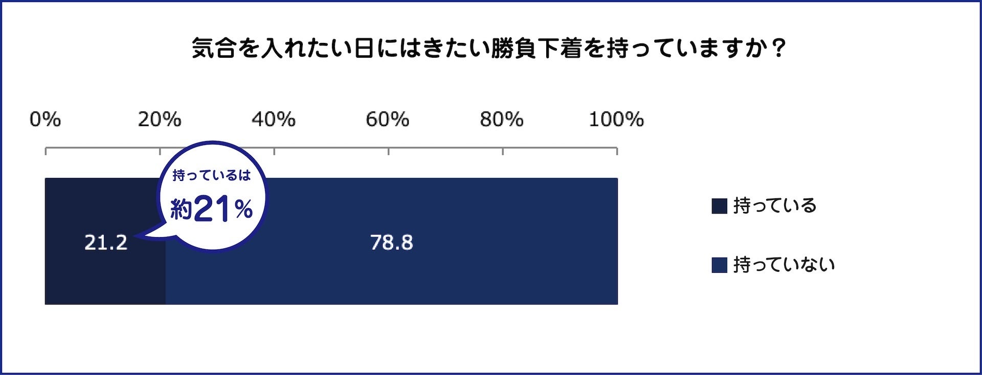 「あなたは気合を入れたい日にはきたい勝負パンツを持っていますか?」と質問したところ21.2%が勝負パンツを所有していることが判明。なかでも20代は所有率が高く、30.8%が「持っている」と回答しました。