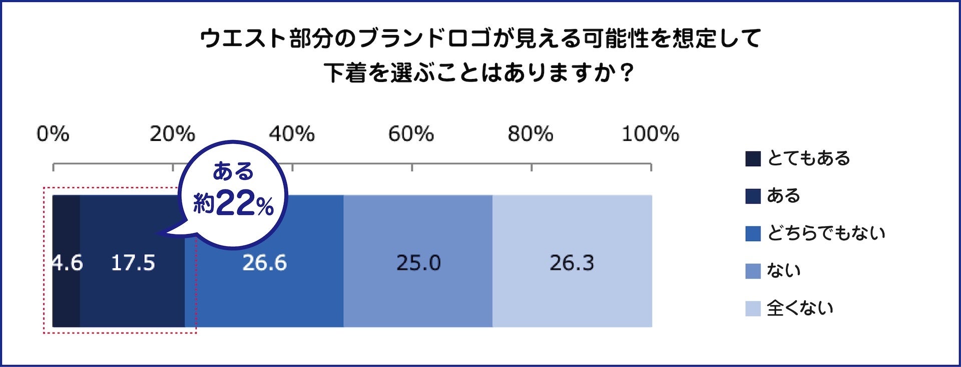 ウエスト部分のブランドロゴが見えることを想定して下着を選ぶことがある人は22.1%