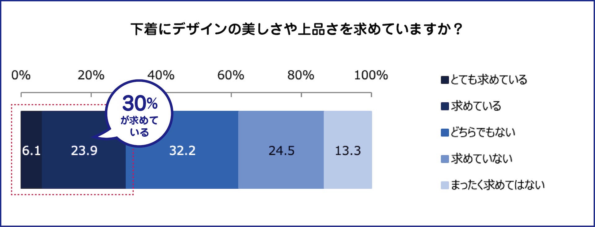 男性の30%が下着にデザインの美しさや上品さを求めていることが判明。