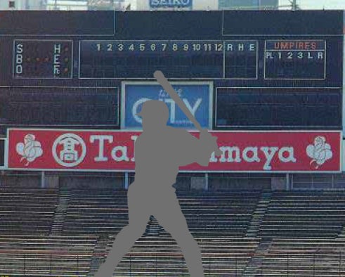 フォトスポット大阪スタヂアムを背景に、ユニフォームやバットを使って写真撮影をしよう。