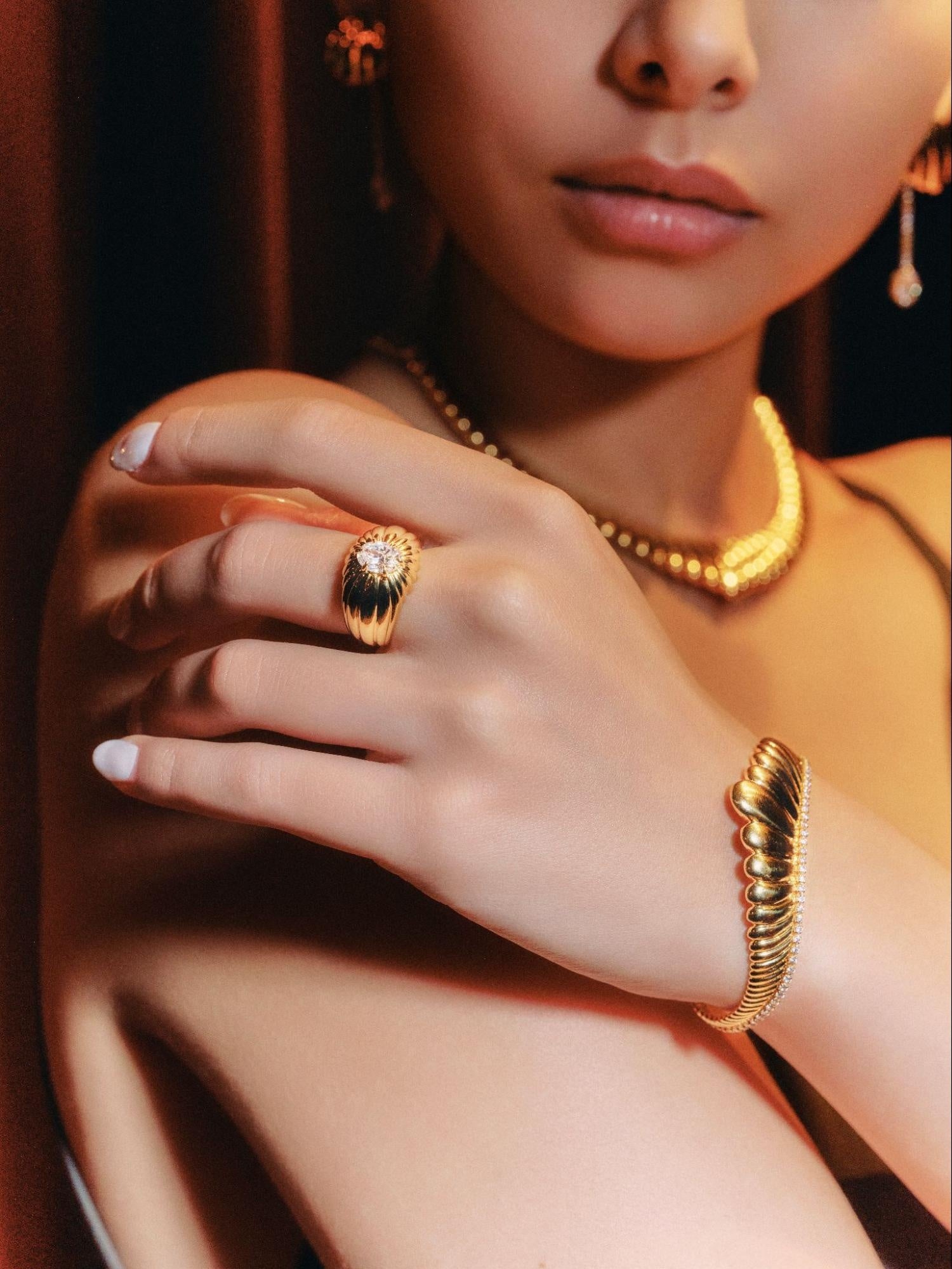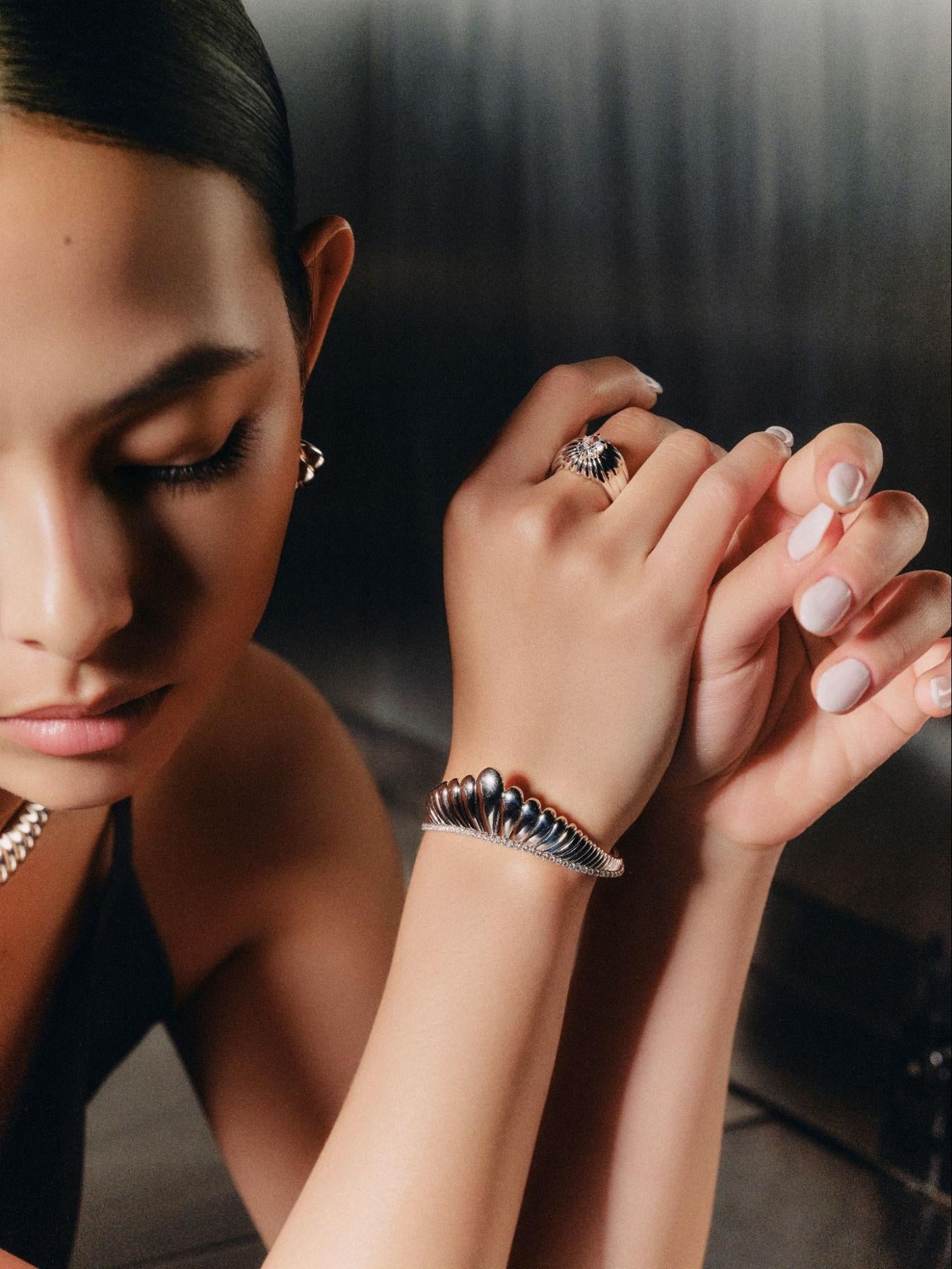 新コレクションは「ヴィーナスの誕生」のモデルとなったシモネッタ・ヴェスプッチの象徴としての女性へのオマージュから生まれました。柔らかさと強さを併せ持ち、世界をしなやかに受け入れるその姿は、現代を生きる女性像と重なります。 貝殻(シェル)をモチーフに、クラシックな普遍性とモダンなニュアンスを調和させたデザインは、身につけた瞬間に日常に静かな高揚をもたらしてくれます。