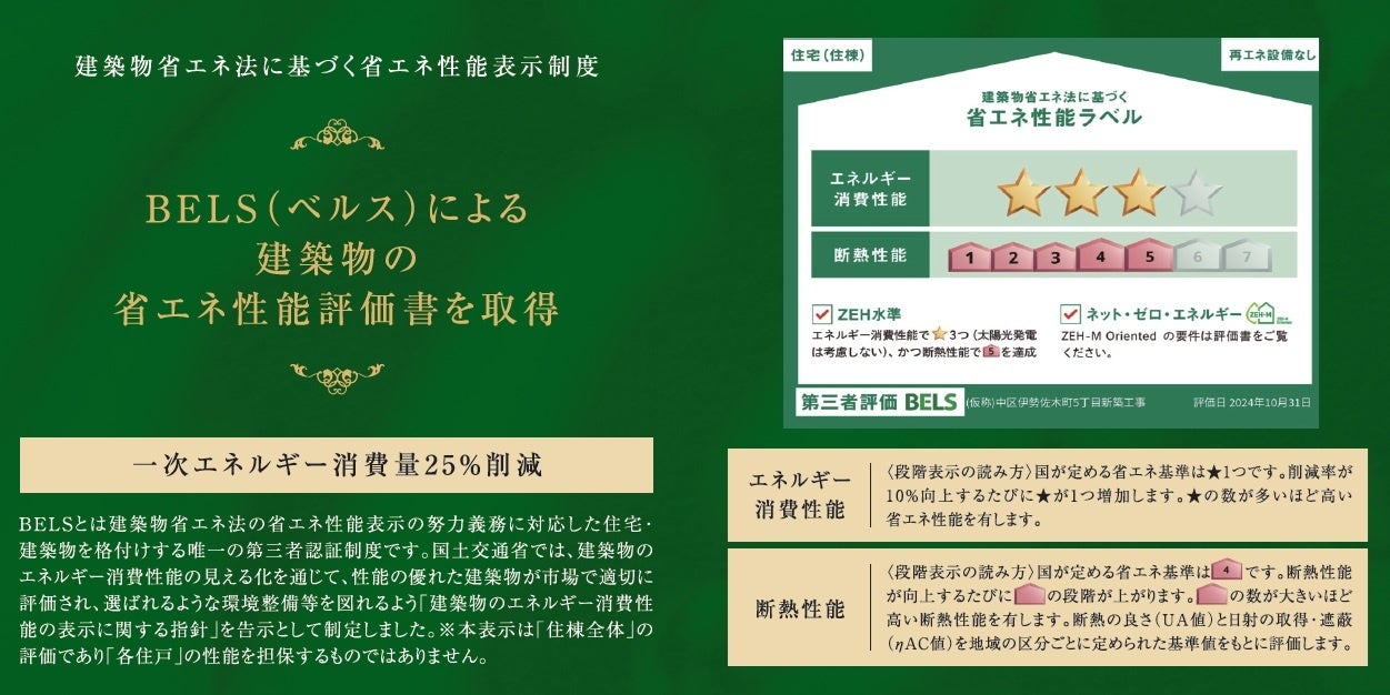 さらに、BELSによる建築物省エネ性能評価書も取得しており、確かな環境性能を証明しています。