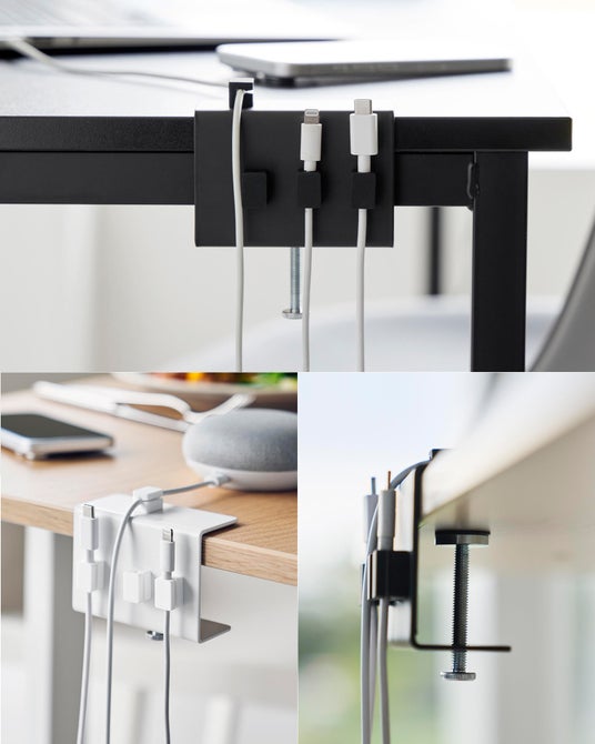 手に取りやすいデスク横にクランプ式でしっかり固定できる、ケーブルホルダーです。