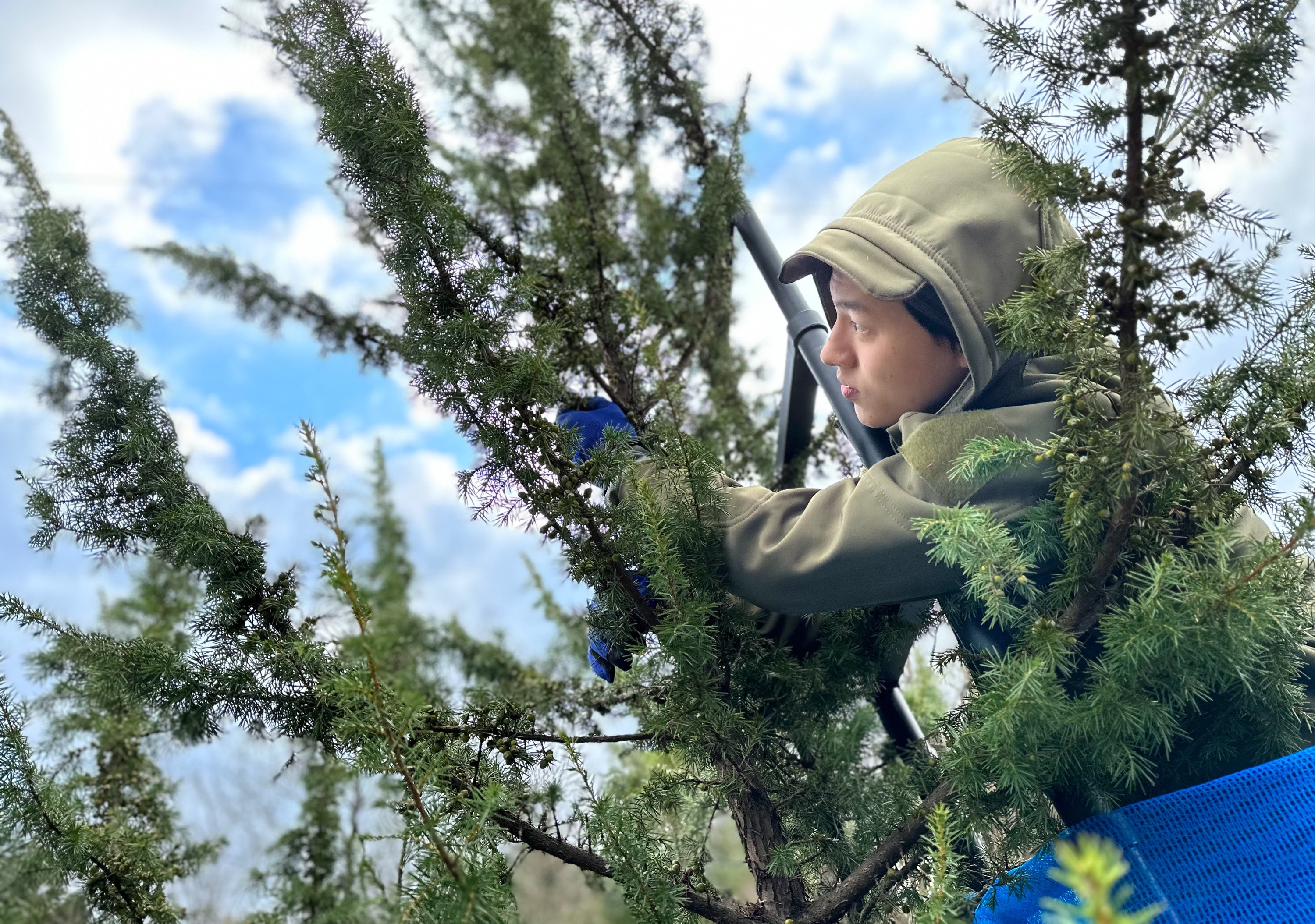 2000年京都府生まれ。自然香の創作線香屋、自然農法のお茶農家、京都の有名寺社を手がける庭師の下で経験を積む。