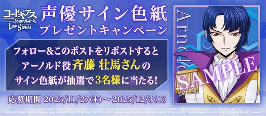 期間中にロススト公式Xをフォローし、対象のポストをリポストすると、斉藤壮馬さん、長月あおいさんのサイン入り色紙が抽選で各3名様に当たります。是非ふるってご参加ください!