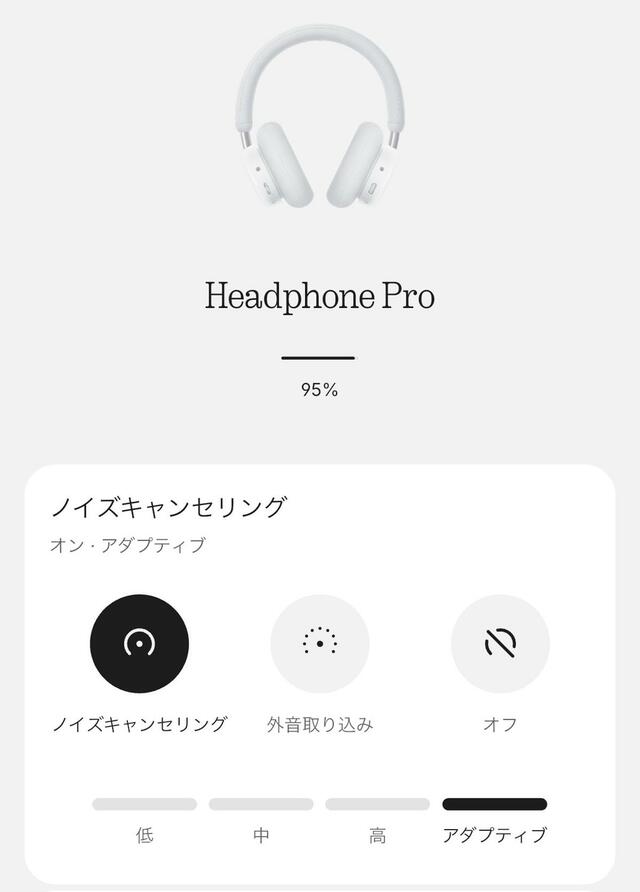 「CMF Headphone Pro」はハイブリッドノイズキャンセリングを搭載。周囲の環境音をモニターして、強・中・弱を自動で切り替えてくれるほか、外音取り込みモードもあります。
