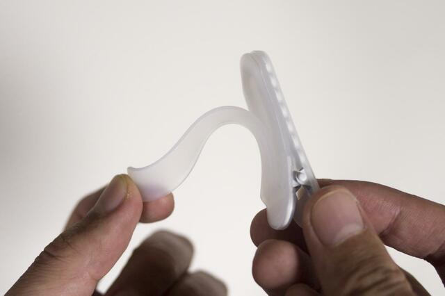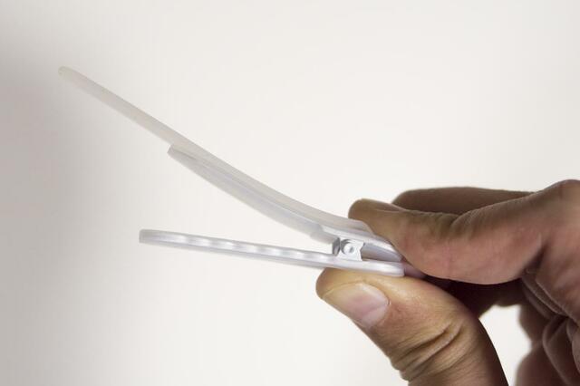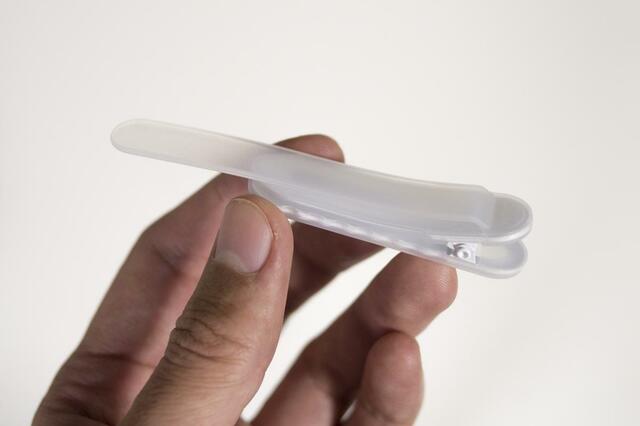 スチール製のクリップがシリコンで覆われていて、飛び出した部分はシリコンのみでフニャフニャ。
