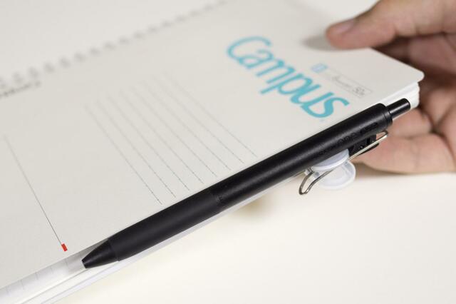 クリップ部分はノートを閉じた状態でも飛び出していて、ペンホルダーとしても使えちゃう。