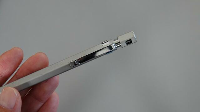 金属製ですが、しっとりしたコーティングのようなものがされていて手に馴染むし、17.7gとちょっと重めで重心も低めだから、筆圧をかけずにスラスラかけるんです。おかげで手も腕も疲れにくい。