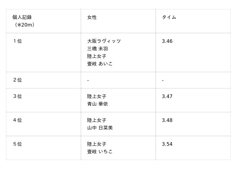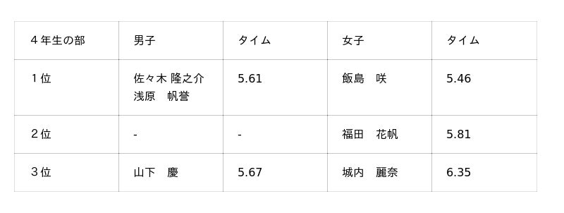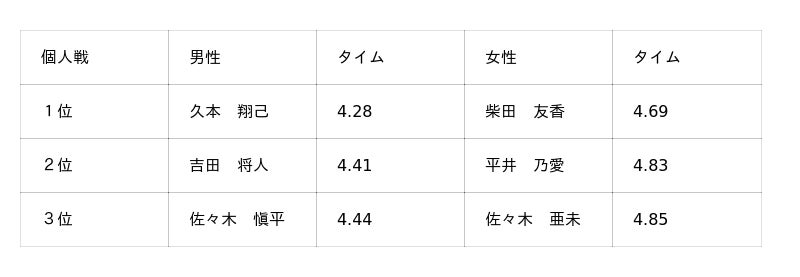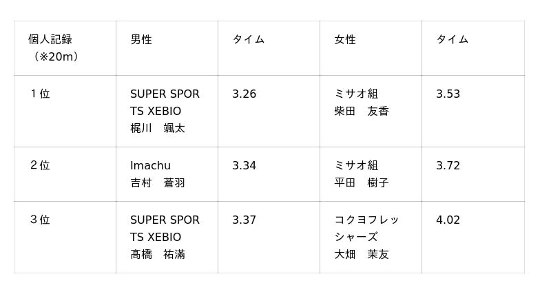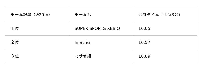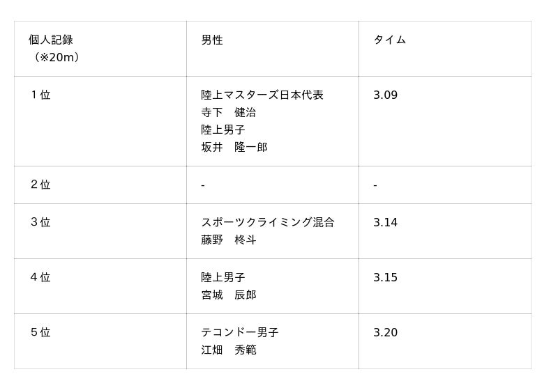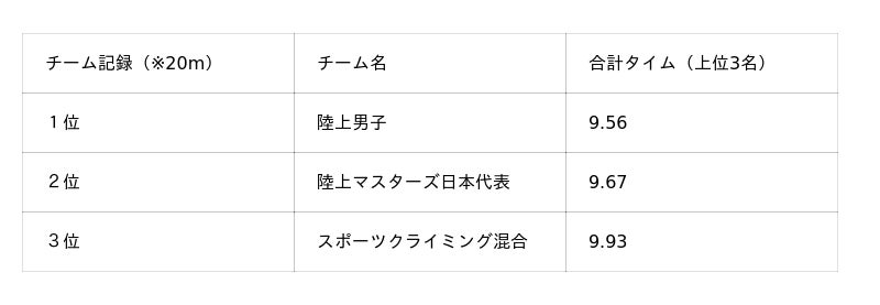 アスリート対抗戦(参加者88名22チーム・雨天のため20mで測定)