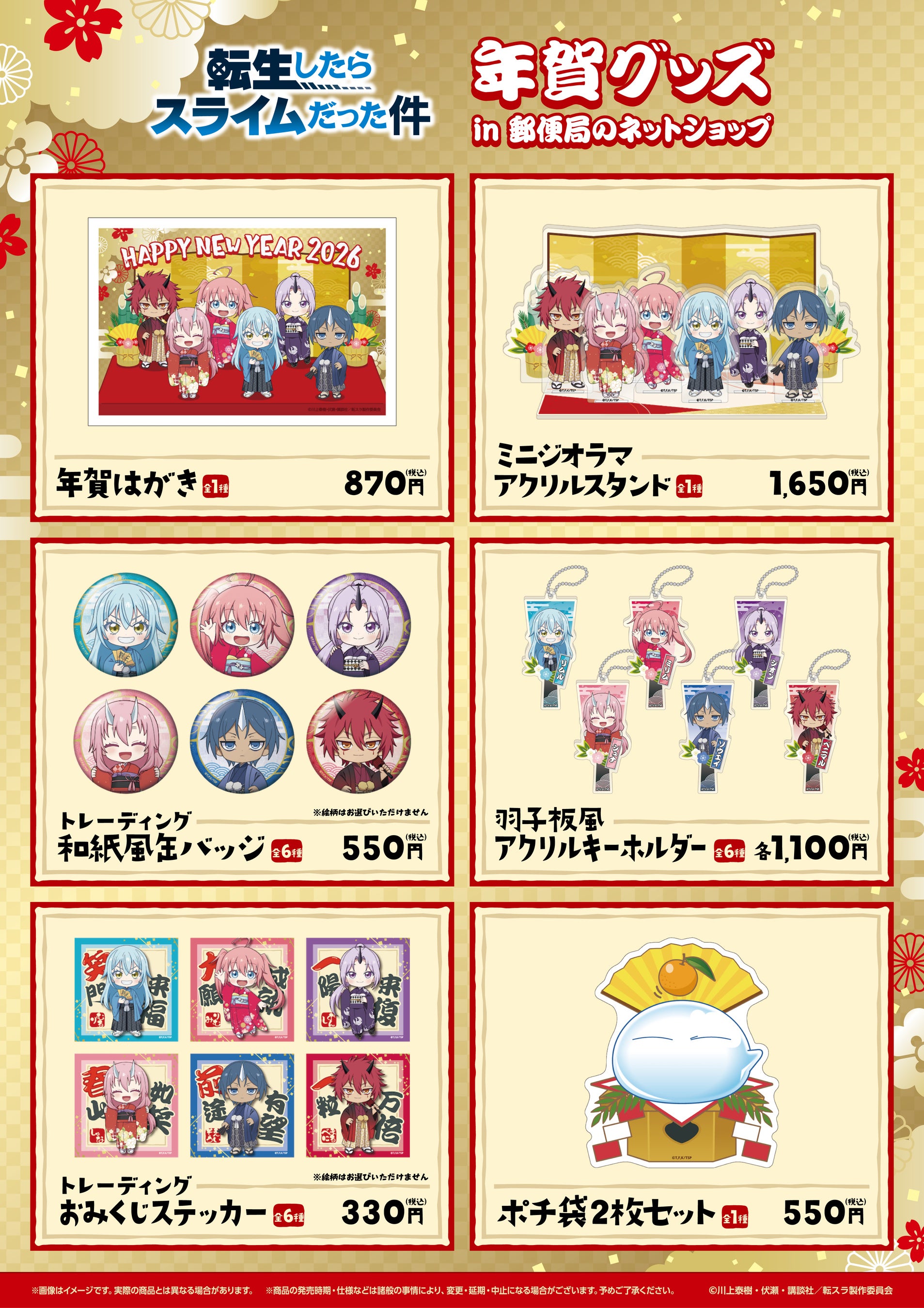 郵便局のネットショップにおいて、「転生したらスライムだった件」「カードキャプターさくら」「ドズル社」のキャラクターを使用した、お正月デザインの年賀状およびグッズを販売いたします。