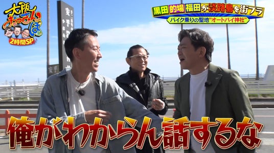 もうひとつの神社というのが「淡路島オートバイ神社」。的場はもちろん、福田もバイクをなんと9台も所持するほどのバイク好き。バイク談義で盛り上がるのだが、黒田は「俺がわからん話するな」とへそを曲げてしまい……?